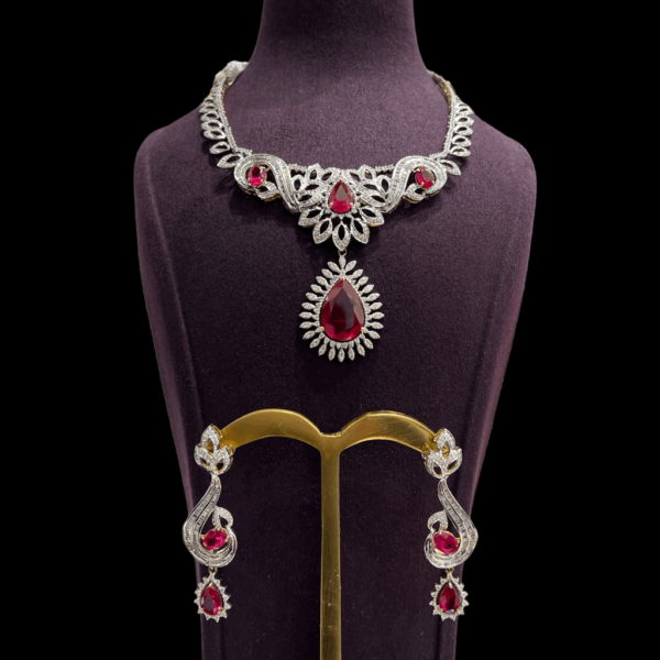 Be the first to review “Red Stone Diamond Necklace Set For Women”