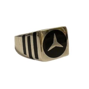 Gold Tone Silver Mercedes Logo Ring